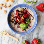 For the oats - keep them them simple so the flavor of everything else stands out. I used unsweetened almond milk blended with hemp seeds, collagen protien and a little vanilla bean. Regular almond // cashew // hemp // dairy milk would be just great too 🙂 Cook your oats as usual or do an overnight soak, then top with berries, balsamic and basil in the morning. I ended up tearing my basil into smaller bites. Recipe below 🙂